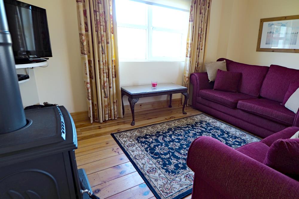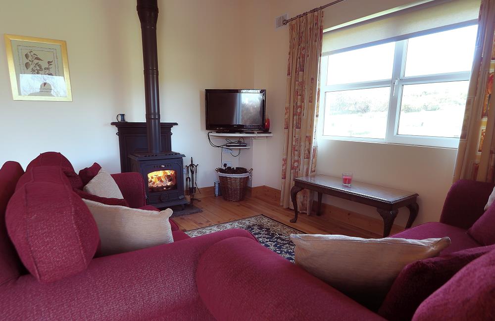 Das Erdgeschoss ist offen gestaltet mit Küchenbereich, Wohnbereich mit Kaminofen, Essbereich und TV.